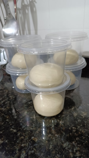 Gosto de deixar a massa já dividida e boleada pois acho que assim facilita depois na hora de abrir.