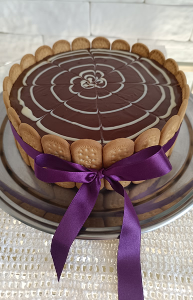 Desenforme a torta e decore com as bolachas em volta. Essa cama de bolachas é opcional, sem elas a torta ficará igualmente bonita e gostosa.